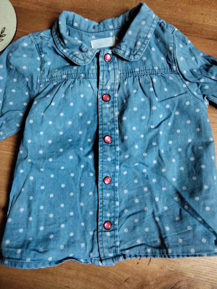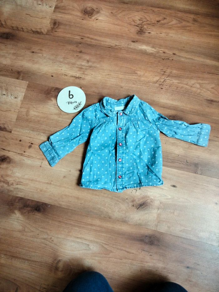 Chemise en jean à pressions , pois blancs Très bon état #marieb44260vetements6mois