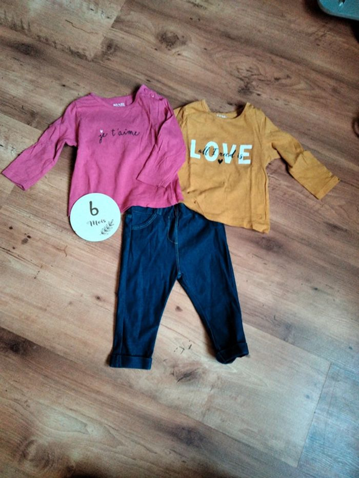 Lot tee-shirts Kiabi : un rose et un moutarde Jean stretch confortable #marieb44260vetements6mois