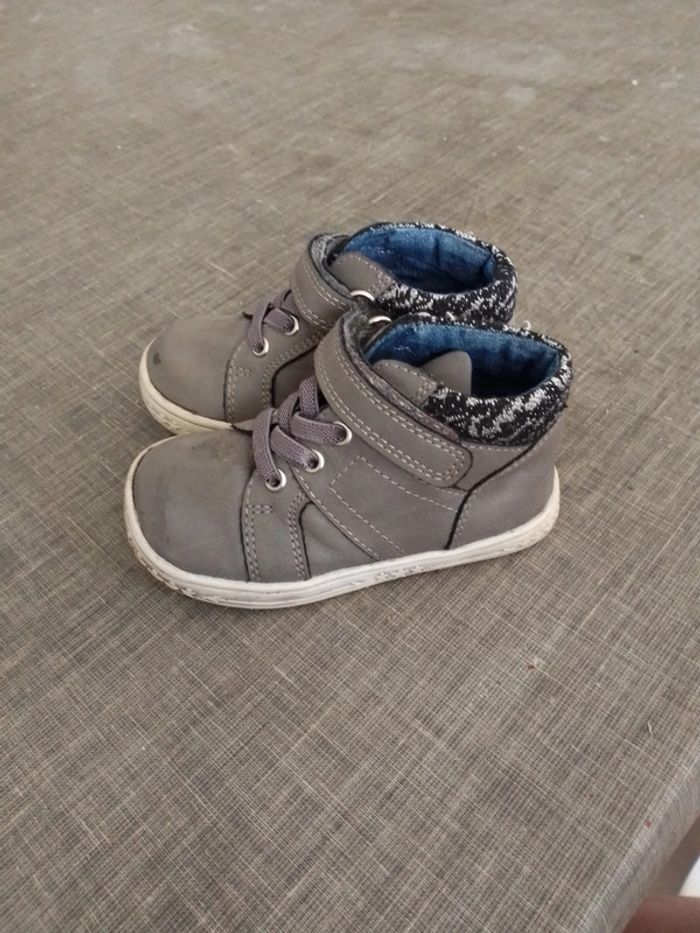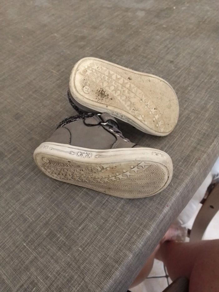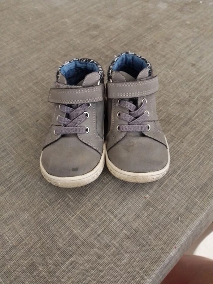 Chaussures montantes grises, lacets élastiques et scratch Bon état, seulement une éraflure sur le bout d'une chaussure Semelles encore en bon état 21 #marieb44260chaussuresgarçon