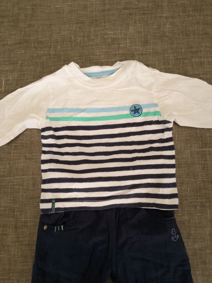 Tenue alphabet Marinière manches longues Pantalon en velours doublé avec taille élastique 12 mois Très bon état #marieb44260vetements12mois