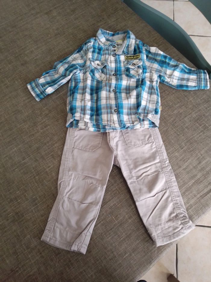 Ensemble obaibi neuf Chemise à carreaux Pantalon en toile épaisse, taille élastique, pression au ventre Très bon état #marieb44260vetements6mois