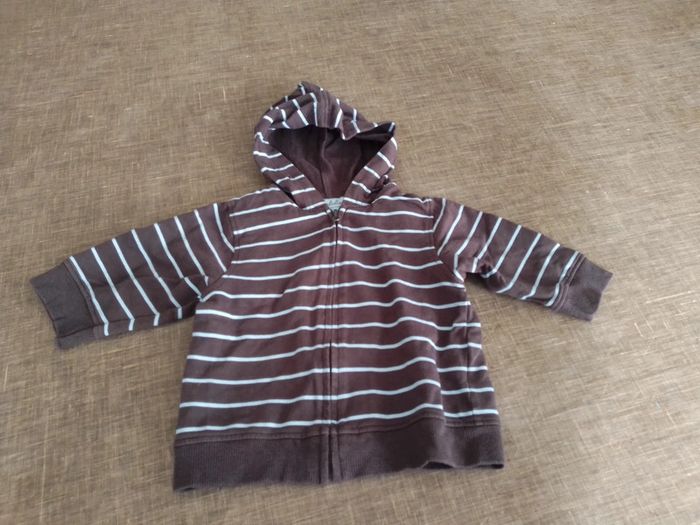 Gilet zippé à capuche et rayures Gris foncé, rayures bleu ciel Très bon état 6 mois #marieb44260vetements6mois
