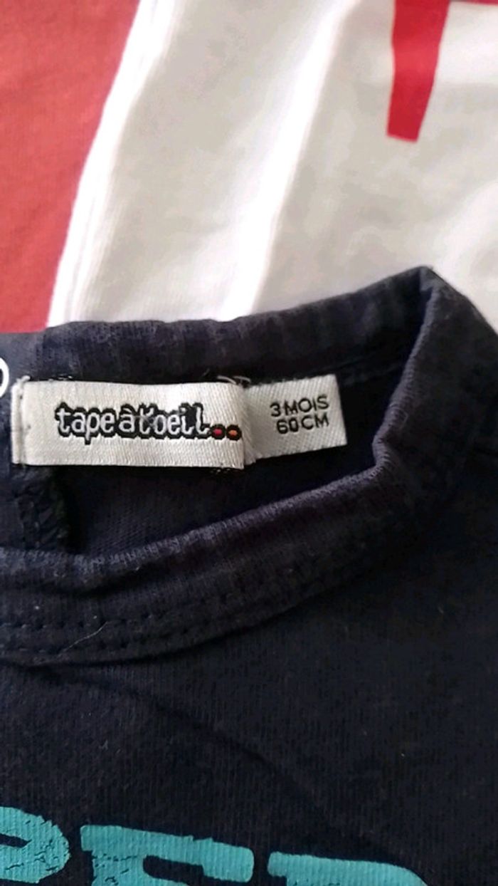 Lot de 3 tee-shirts manches courtes, taille 3 mois. Très bon état, peu portés. Ne pas hésiter pour toute question ! #marieb44260vetements3mois
