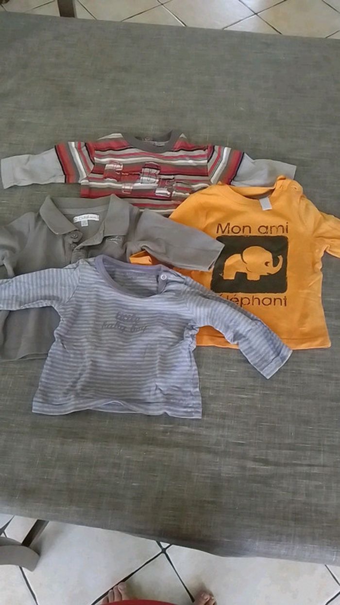 Lot 4 tee-shirts manches longues, taille 3 mois. Très bon état Prix possible si lot avec d'autres articles ! #marieb44260vetements3mois