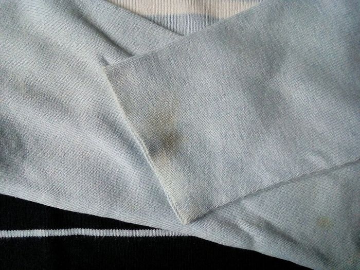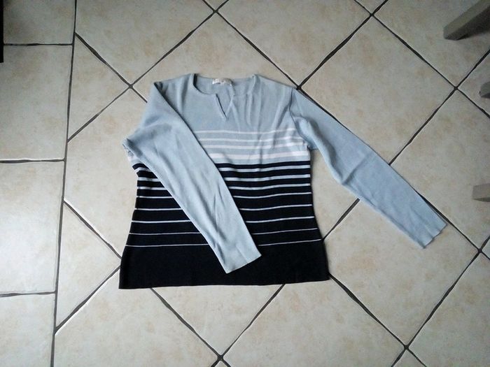 Pull rayé bleu ciel, blanc et bleu marine de chez Formul Taille 2 Souvent porté. A quelques traces très discrètes aux manches (voir photos) #marieb44260vetementsfemme