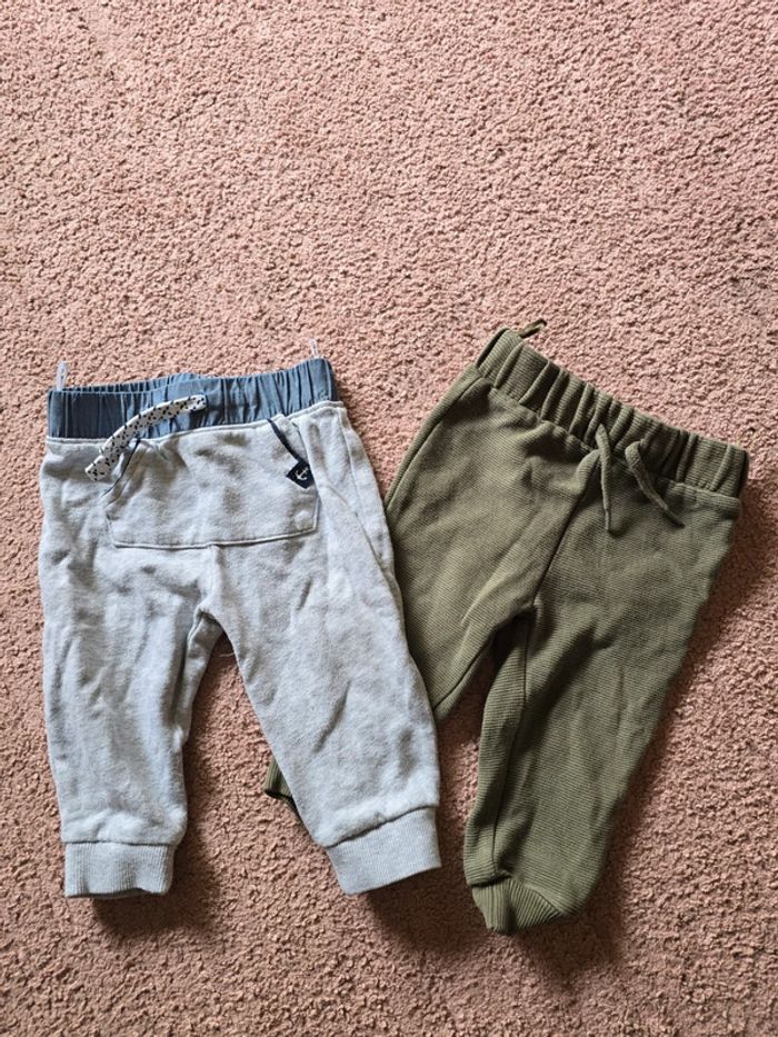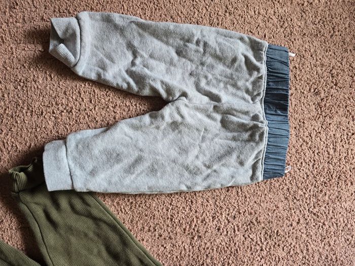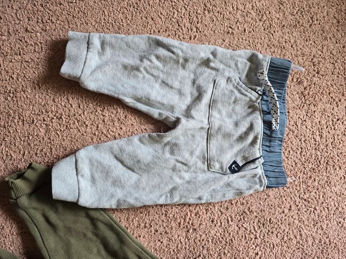 Le gris en bon état car des bouloches mais couleur impeccable pas de trou ni de tâches Le vert en excellent état Les deux taille 12 mois