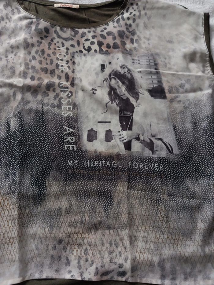 T-shirt Camaïeu kaki M - photo numéro 1