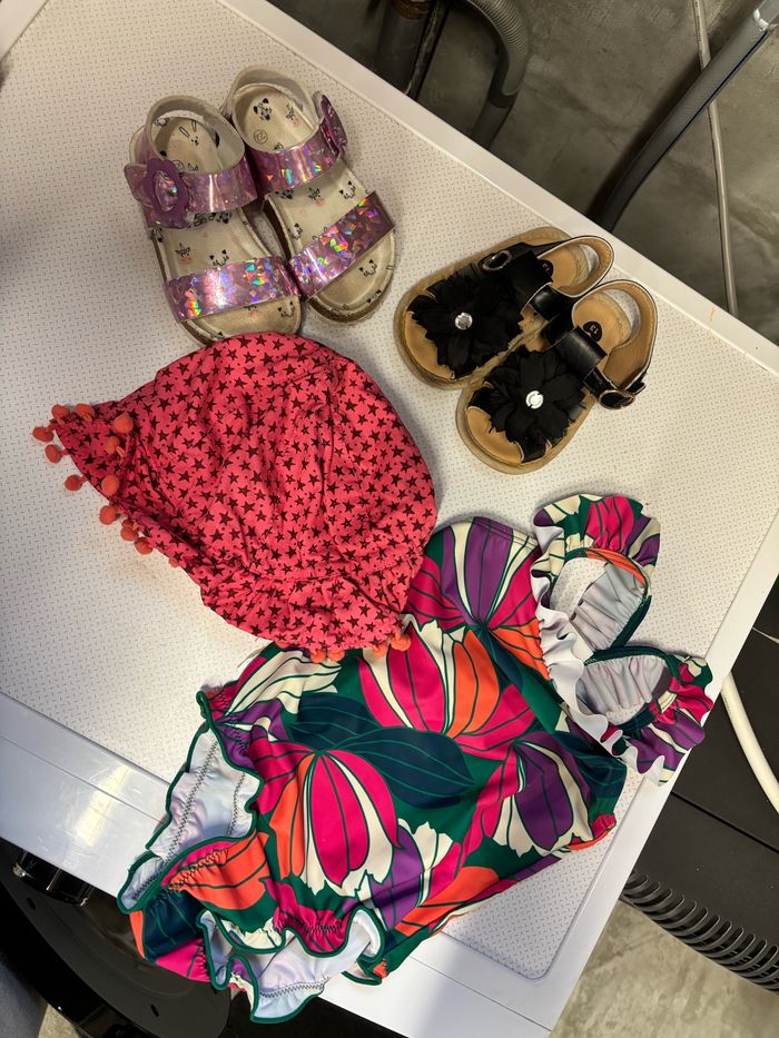 Nue pieds porté quelques fois. Une chapeau neuf et un maillot de bain de kiabi neuf également.