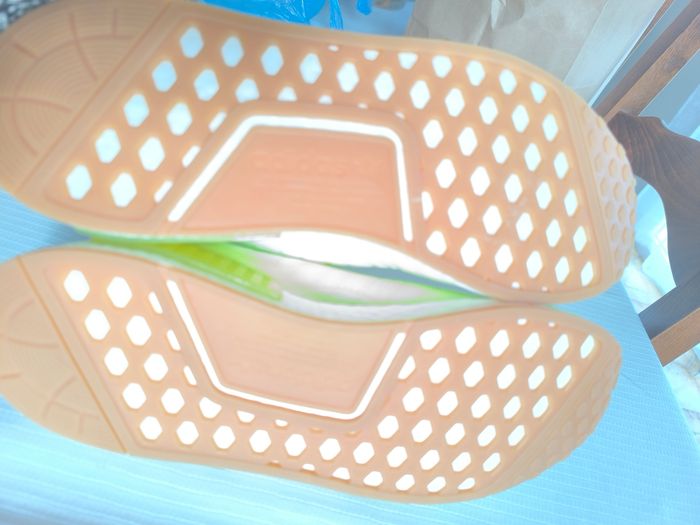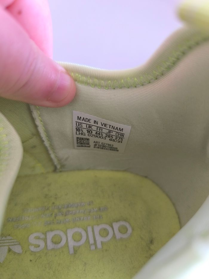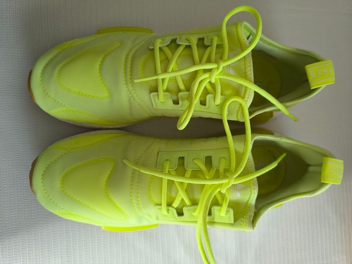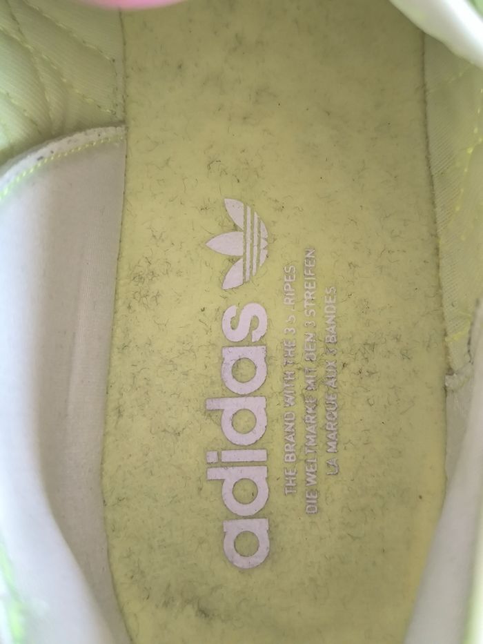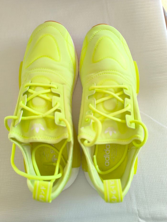Marque: Adidas Pointure: Attention pointure 44 2/3 Couleur: Jaune fluo Etat: Très bon état peu porté, bouloches/minou présent dans la semelle