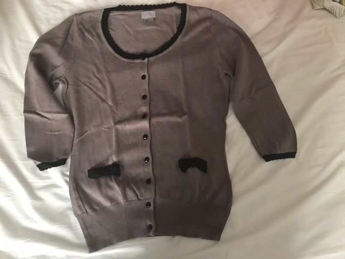 gilet manches 3/4 couleur marron avec liserés noir boutons brillants jolis détails comme neuf t.34/36 #nonochamalo_vet_femme34 #nonochamalo_vet_femme36