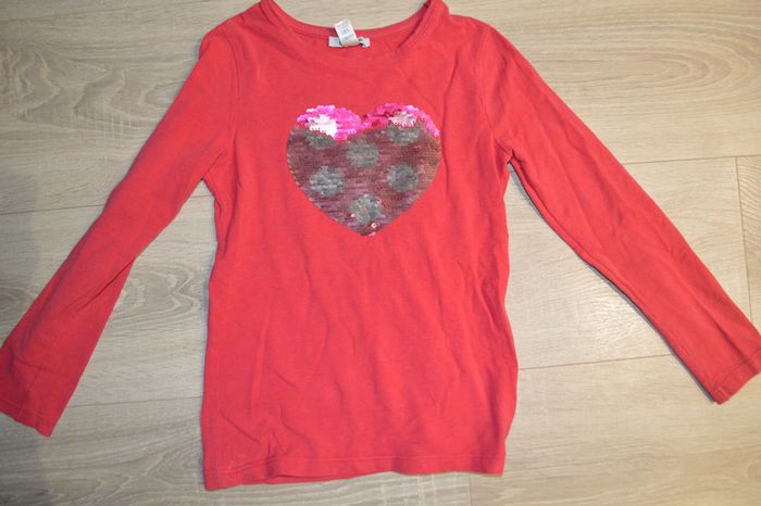 Tee shirt manches longues Okaidi coeur strass réversibles Tee shirt en bon état, pas de taches, ni trous #8ansfilleninie48