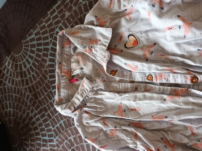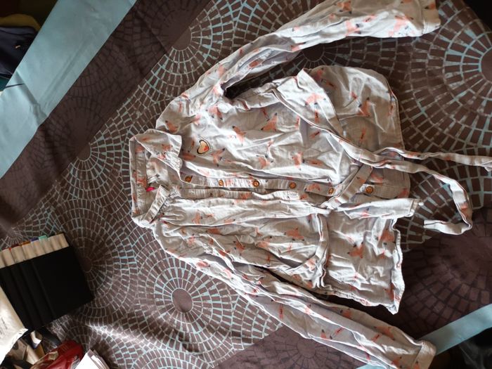Chemisier Fille Marque orchestra Couleur bleu gris Motif oiseaux 8 ans Ceinture cousue au chemisier Très bon etat