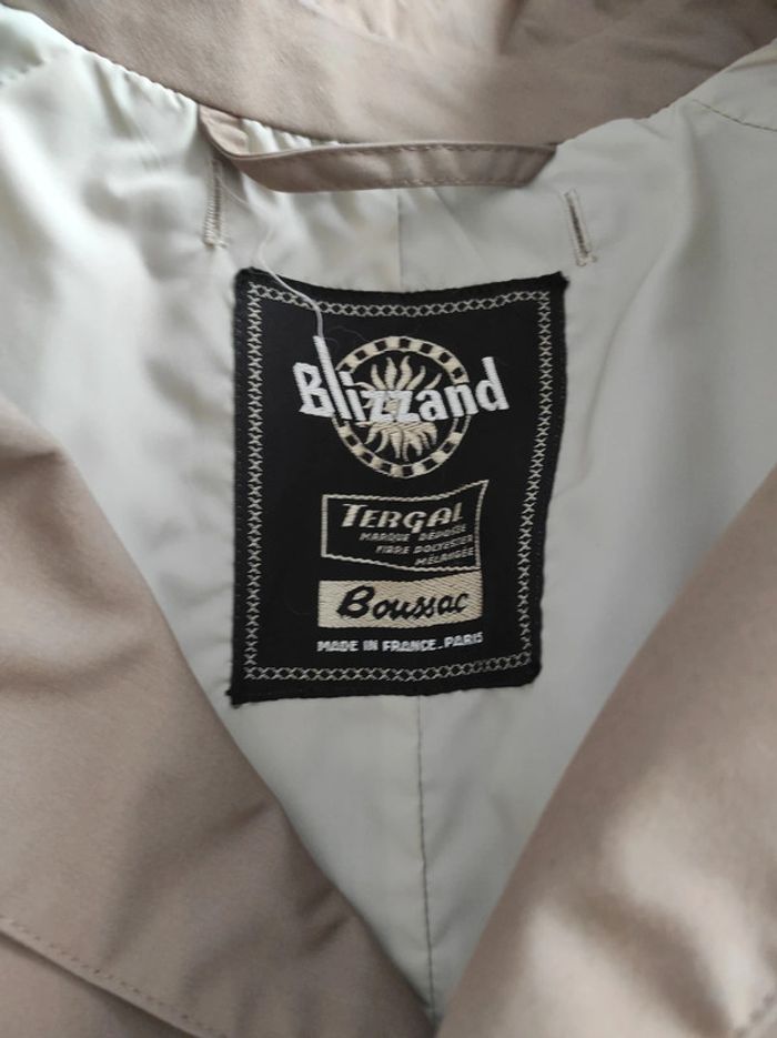 made in France . pas d étiquette de taille marron beige en Tergal. largeur sous aisselle:71cm.longueur totale sous aisselle:71cm.une petite tache dans le dos #pupuceetsapucefemmemanteau