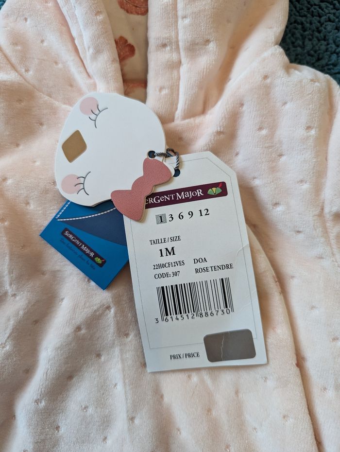 Manteau sergent major bébé rose en 1M, jamais porté et encore avec étiquette : idéal cadeau de naissance.