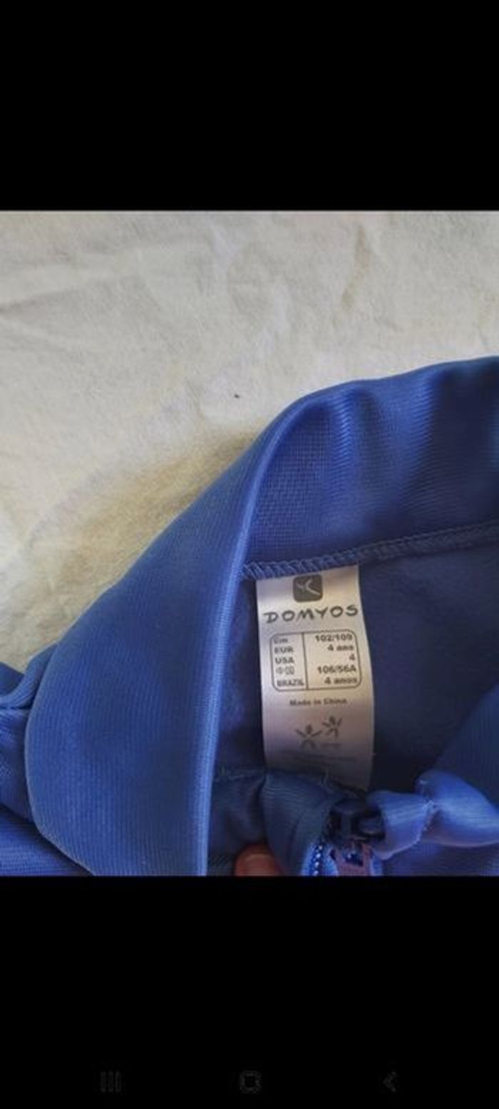 Survêtement Taille 4 ans Defaut,Pointe de crayon voir dernière photo Couleur bleu, blanc Marque Domyos