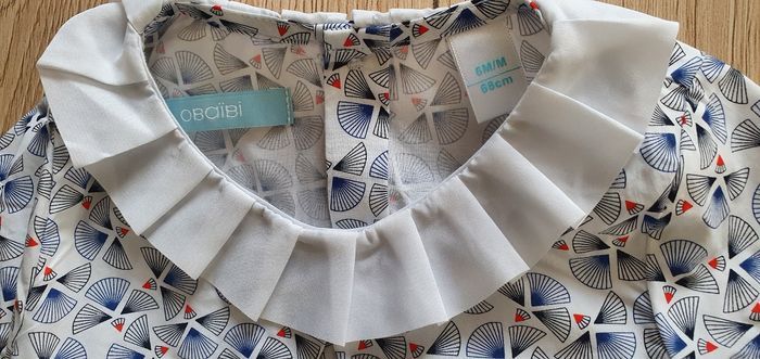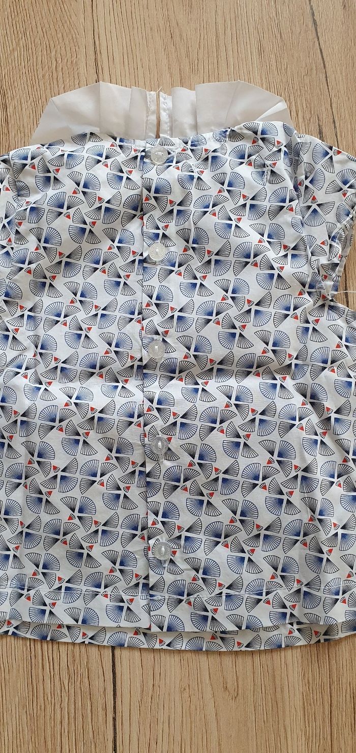 Blouse sans manche boutons dos bébé 🚼 fille Taille 6 mois Couleur blanc avec dessins bleu Marque obaibi Maison non fumeur Linge lavé avec lessive bébé