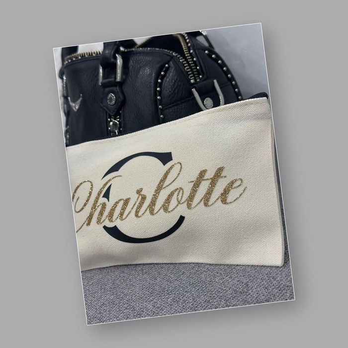 Belle pochette avec fermeture N’hésitez pas à me contacter pour un prénom en particulier ! 😁 De disponible 3 coloris-> beige/ blanc/ noir