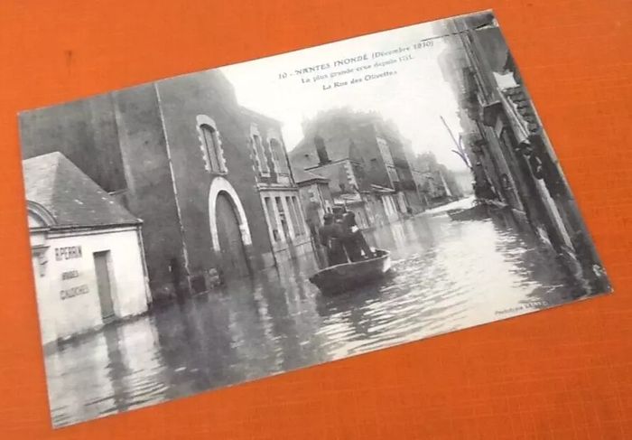 Carte postale ancienne Nantes inondé (Val-de-Marne) Décembre 1910 Les plus grande crue depuis 1711 La rue des Olivettes
