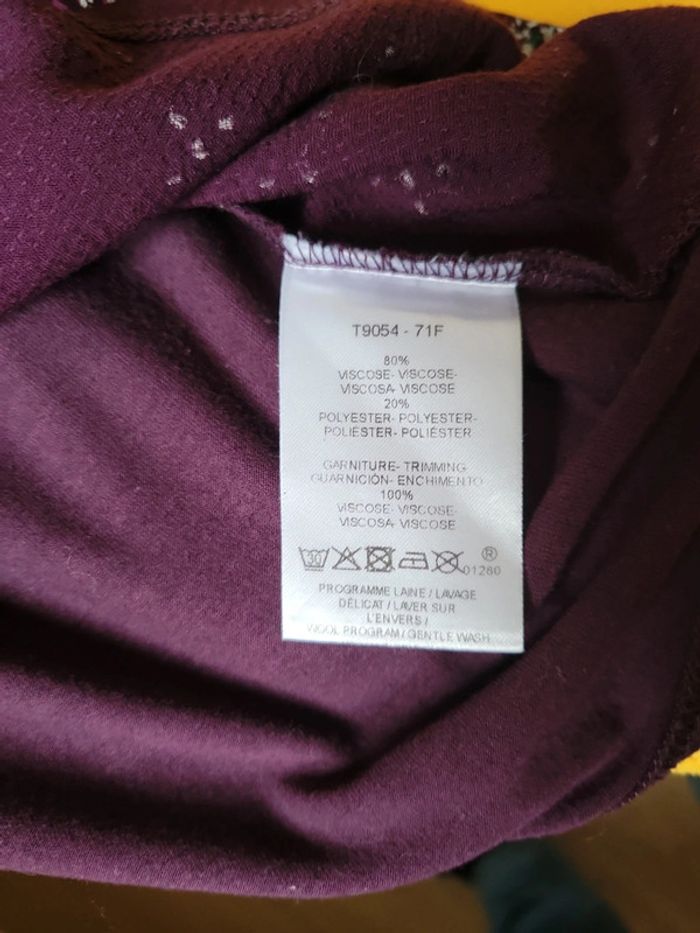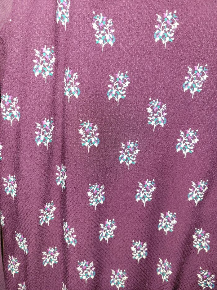 Top violet (plus foncé que sur la dernière photo) avec petites fleurs et manches 3/4. Taille 40. #ka_14vetementsfemme