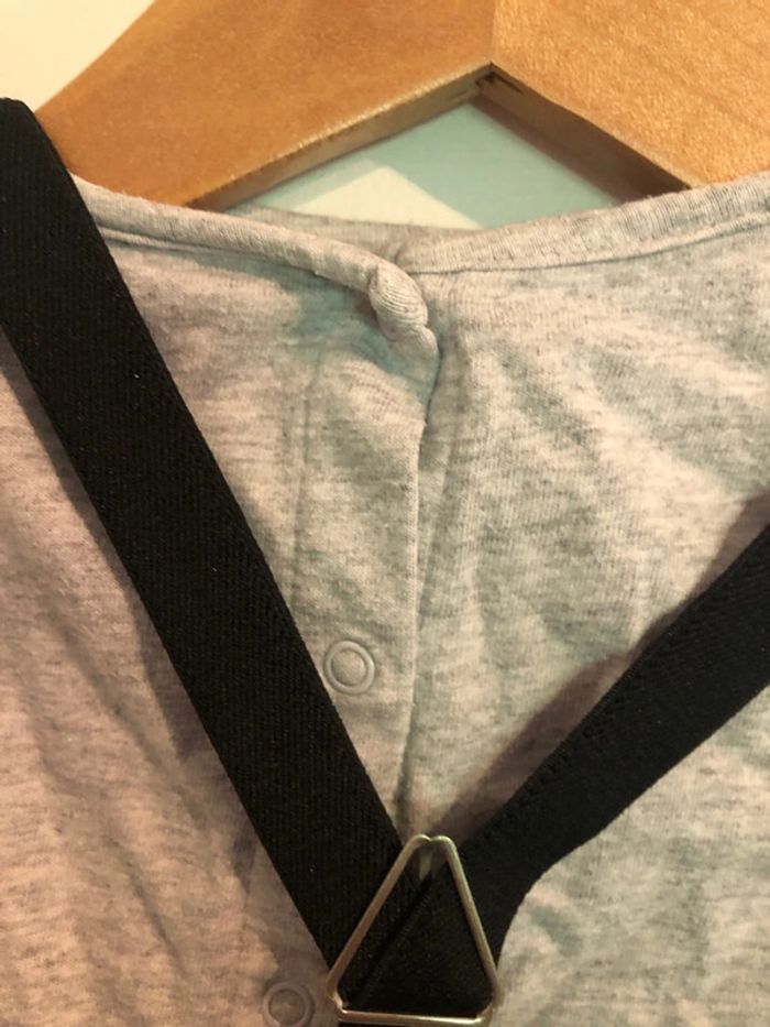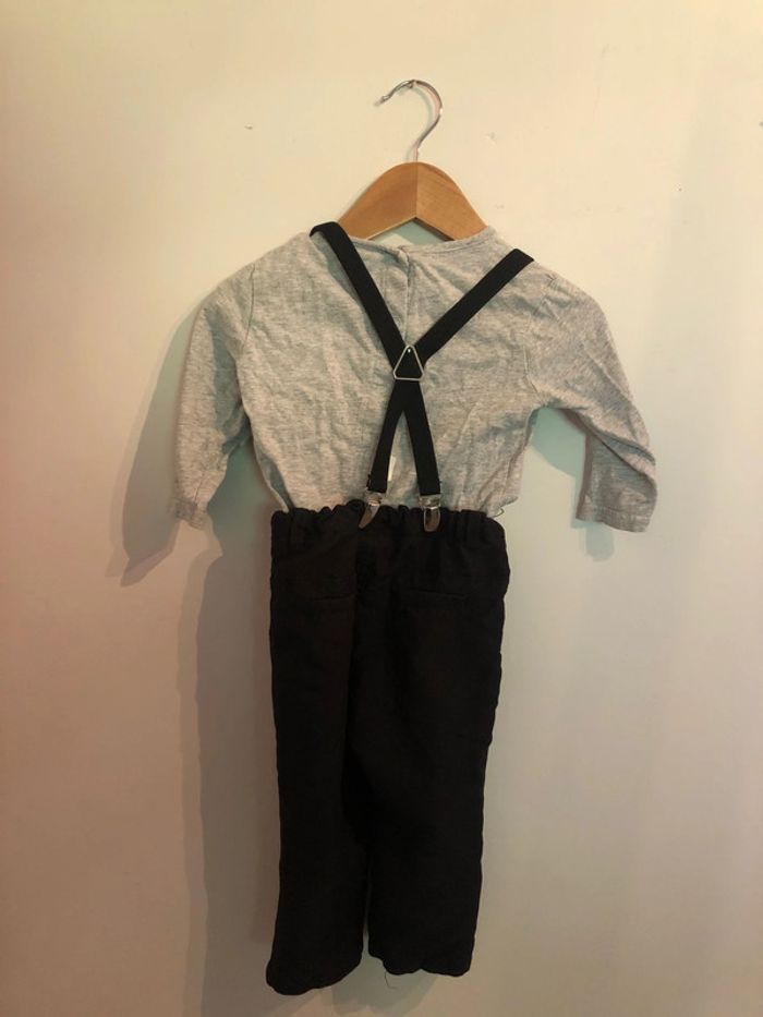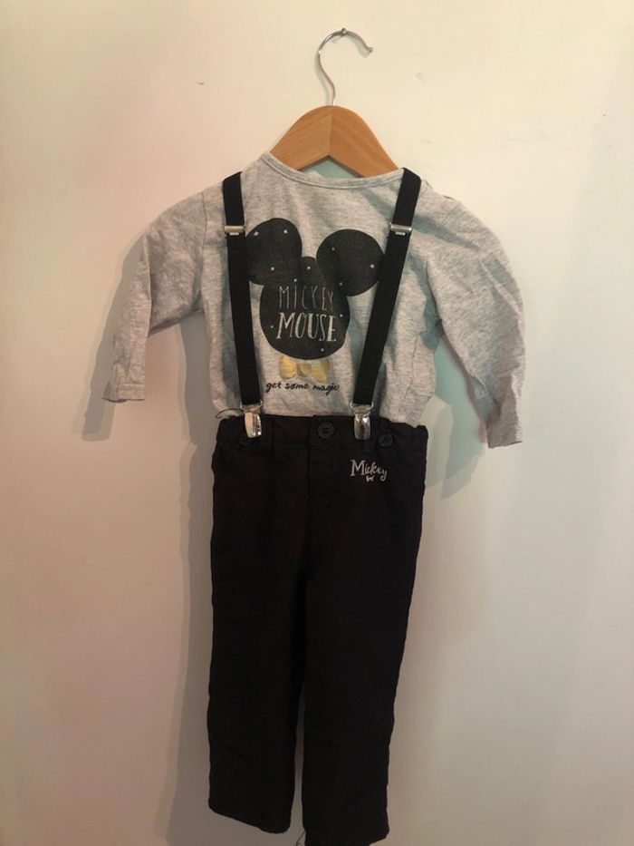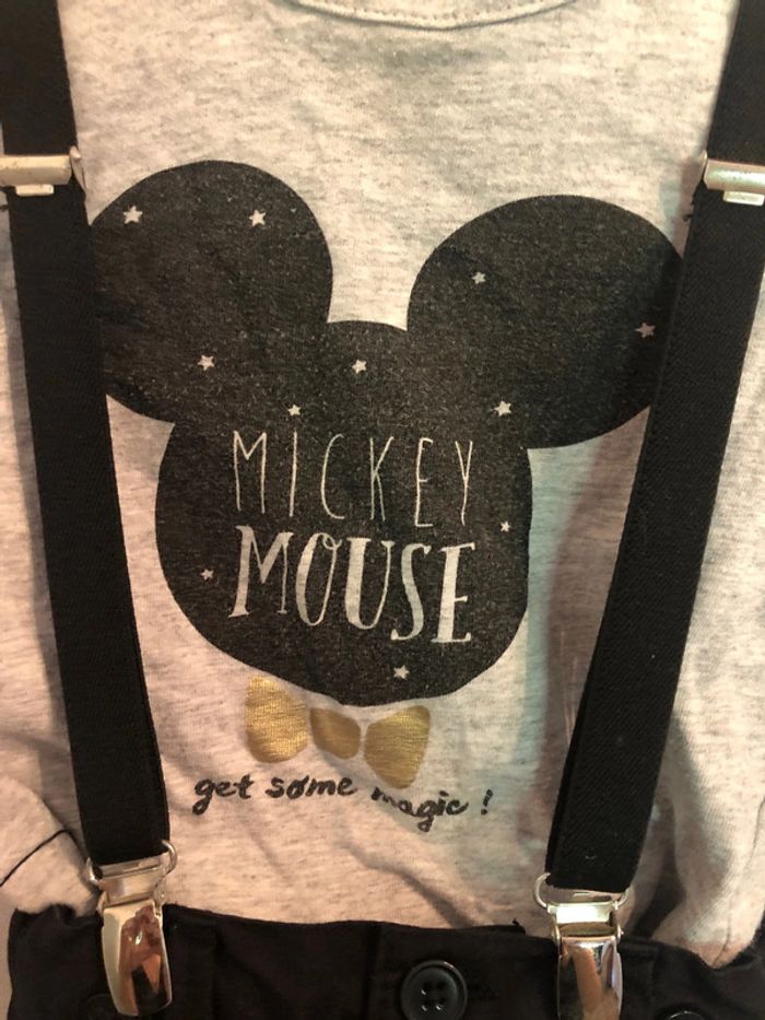 Vends ensemble contenant pantalon à bretelles et t-shirt manches longues Mickey de couleur noir et gris taille 12 mois, de la marque Disney Baby Bon état. N’hésitez pas à visiter mon dressing. Beaucoup d’articles et des remises dès 2 articles achetés. Faites vous plaisir ! #titelo6garçon12mois