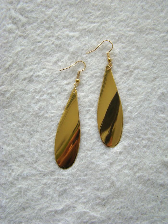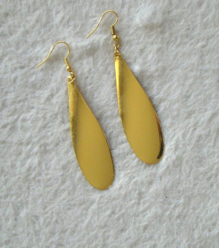 boucles d'oreilles dorées sur crochets hypoallergéniques, reflètent la lumière aussi bien au soleil que le soir neuves jamais portées sont de ma création avec embouts transparents pour ne pas les perdre