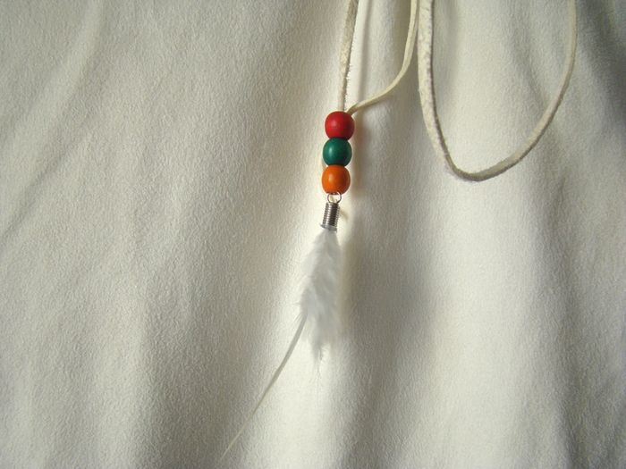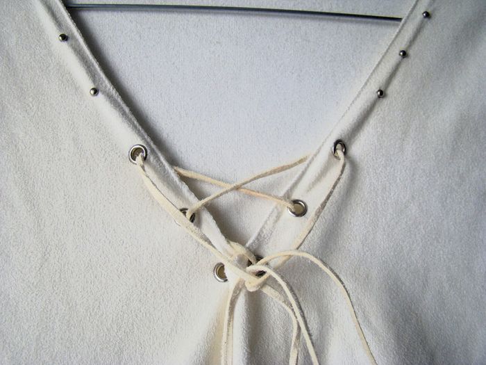 tunique neuve ivoire T38 genre indien avec lanière cuir avec plume et perles