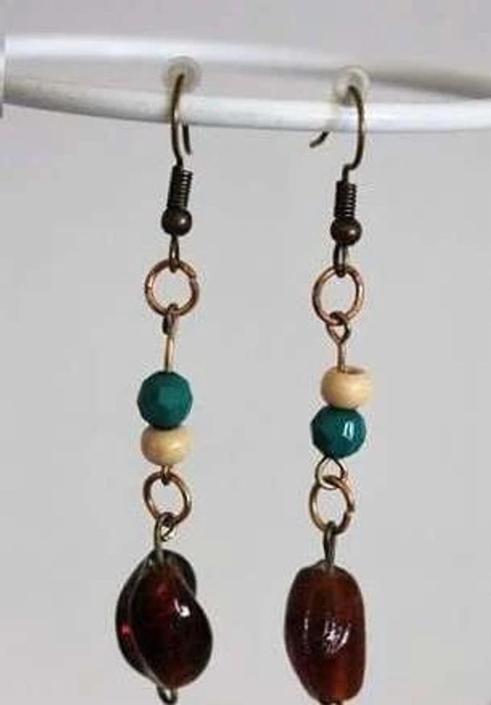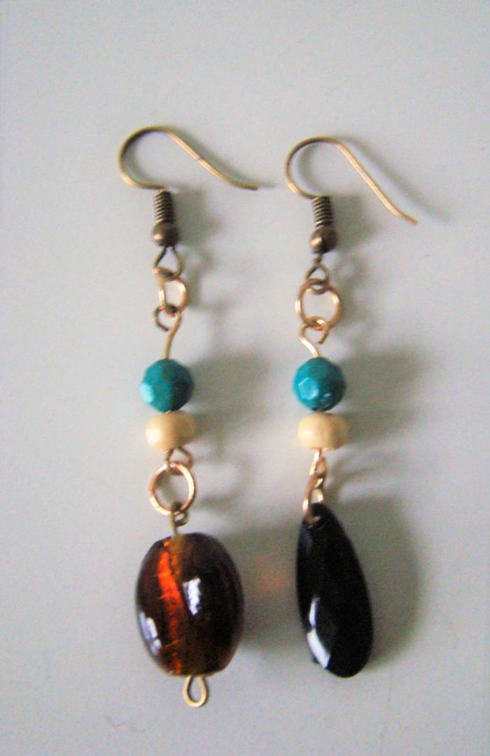 boucles oreilles  pendantes  turquoise  ambre - photo numéro 1