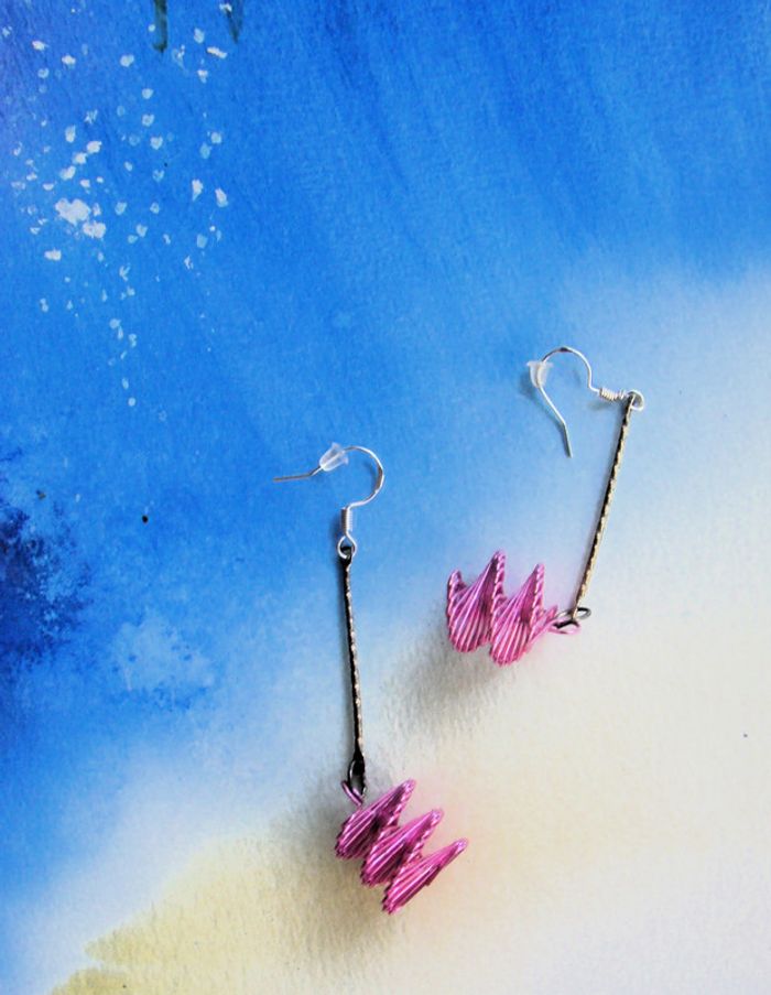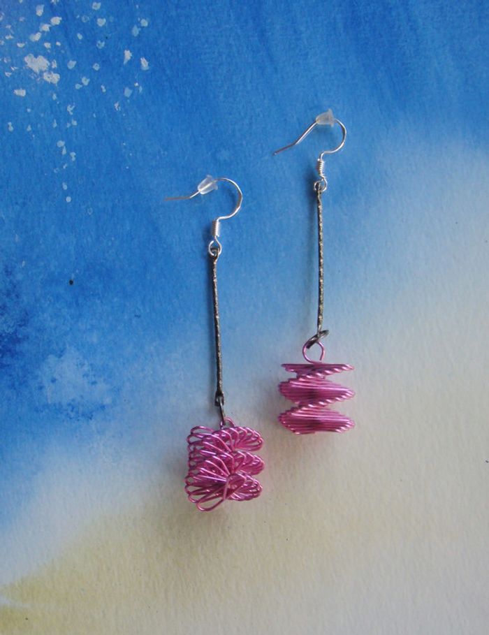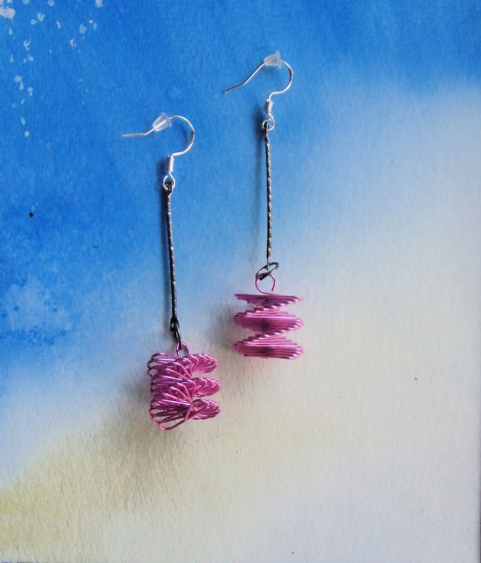 boucles or pendantes agréables pour l'ETE jamais portées sont ma création neuves roses - crochets argent poinçonné 925 - matériel hypoallergénique légères embouts pour ne pas les perdre longueur 6 cms