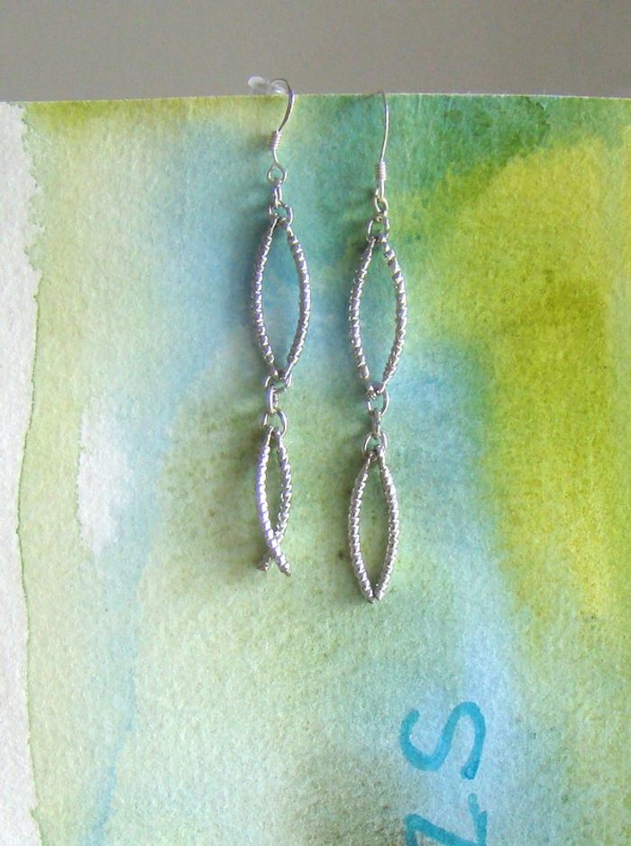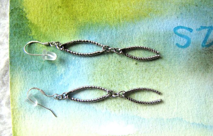 boucles d'oreilles neuves jamais portées sont de ma création crochets en argent véritable 925 pendant en métal hypoallergénique pour éviter les allergies longueur du pendant 5 cms embouts transparent pour ne pas les perdre