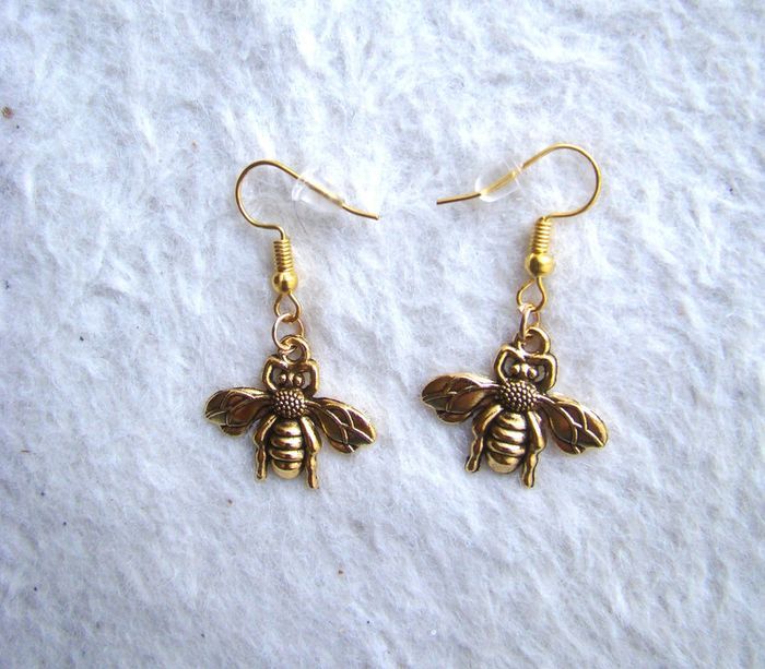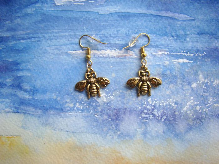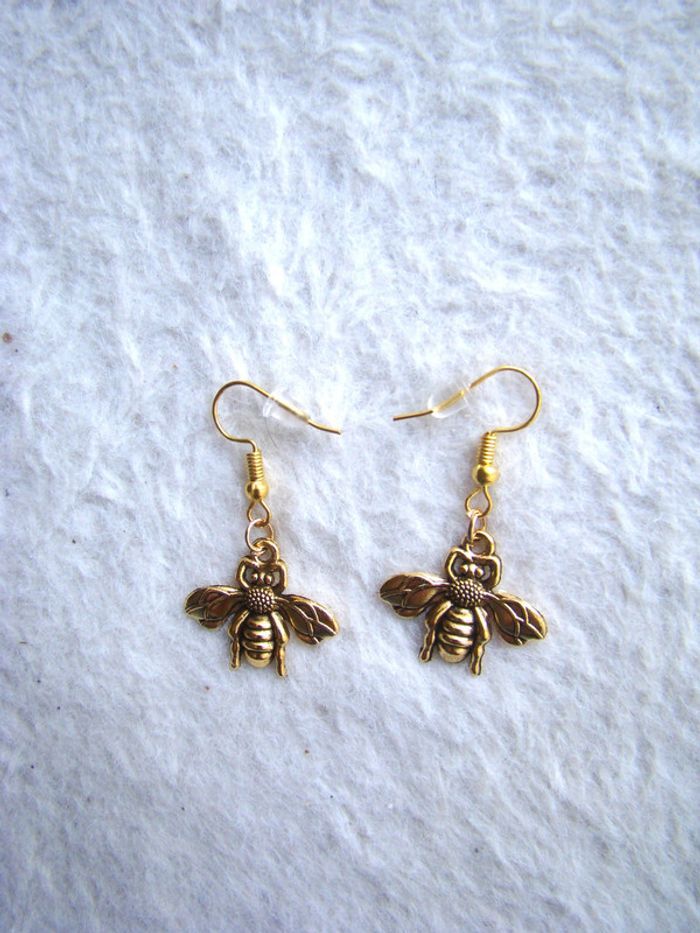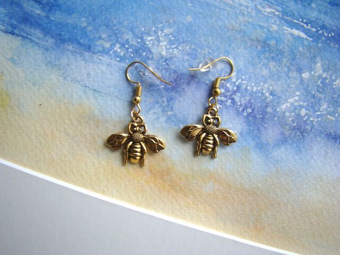 boucles dorées neuves jamais portées sont de ma création crochets et breloque abeille en métal hypoallergénique embouts transparents pour ne pas les perdre