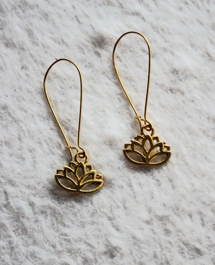 boucles d'oreilles neuves jamais portées car sont de ma création grand crochet doré en métal hypoallergénique (ne donne pas d'allergie) avec une fleur fourni avec pochette cadeau