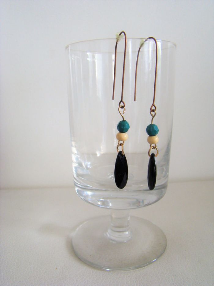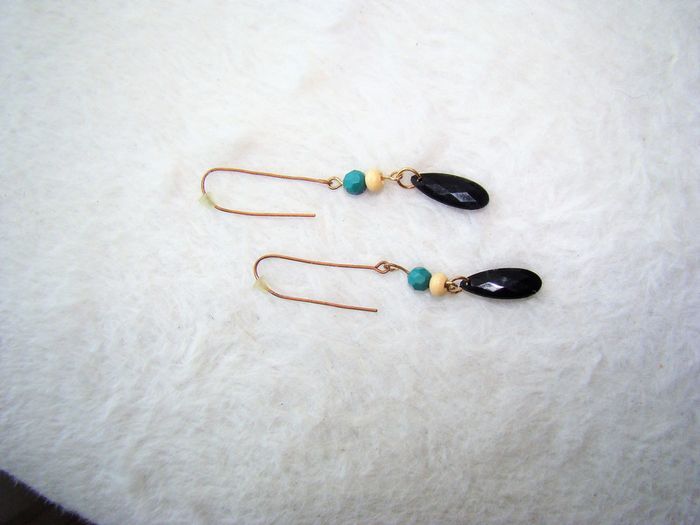 boucles oreilles cuivrées grand crochet avec perles- elles sont de ma création donc jamais portées NEUVES avec embouts pour ne pas les perdre
