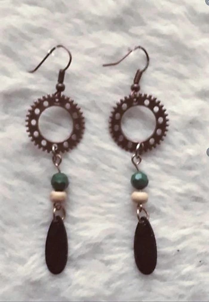 Boucles oreilles neuves de ma création. Embouts pour ne pas les perdre. Livrées avec pochette cadeau