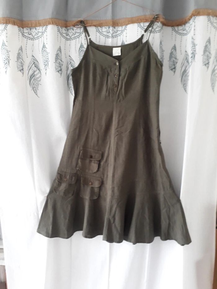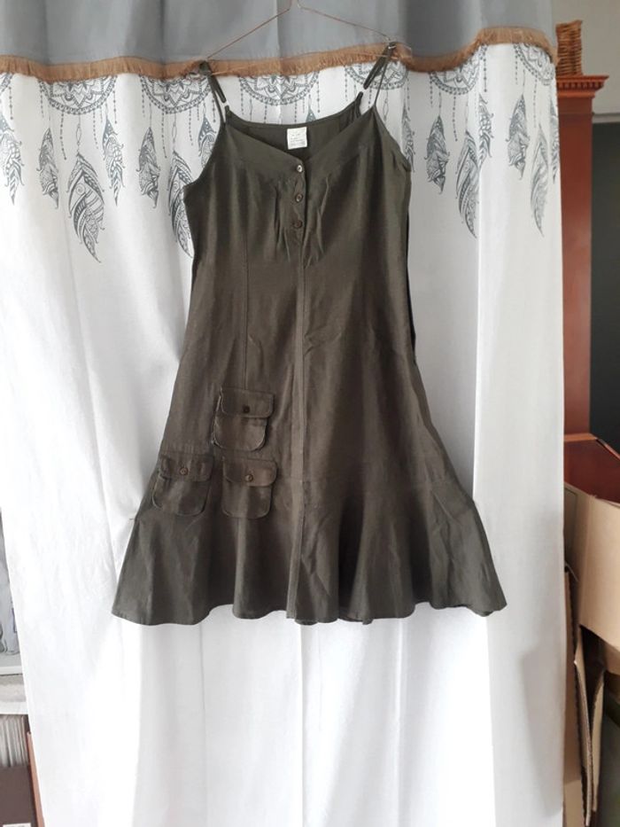 Robe en lin neuve kaki T40