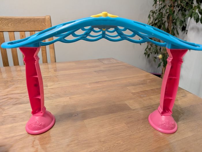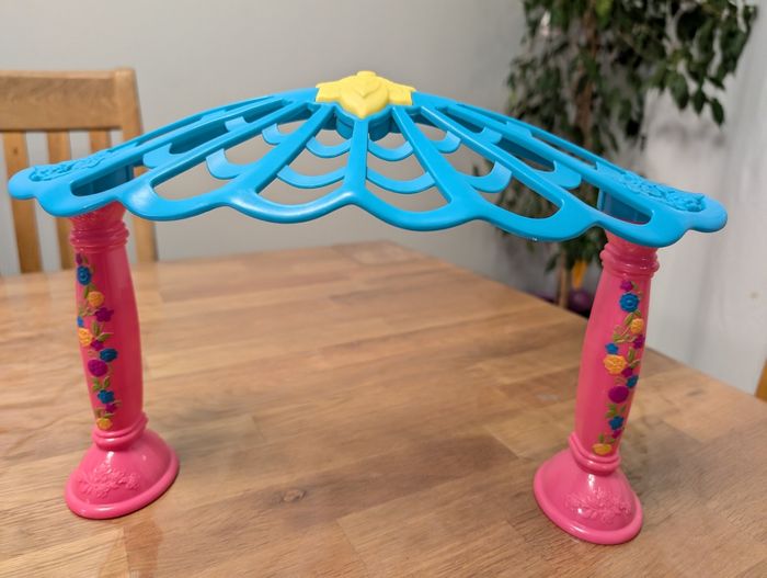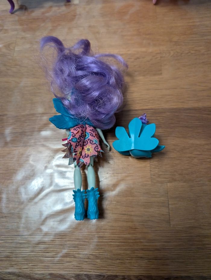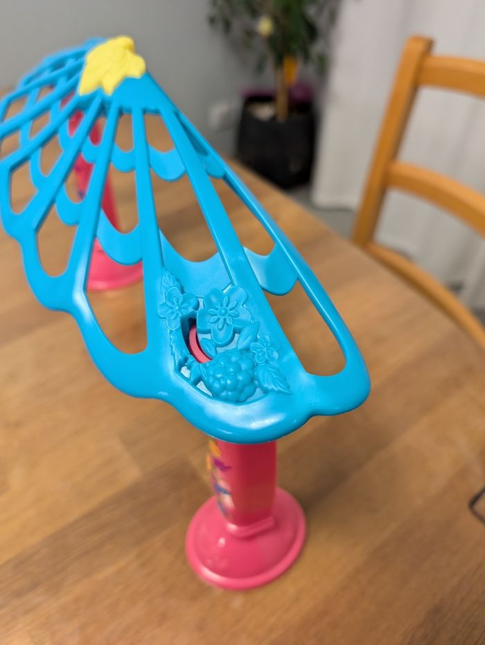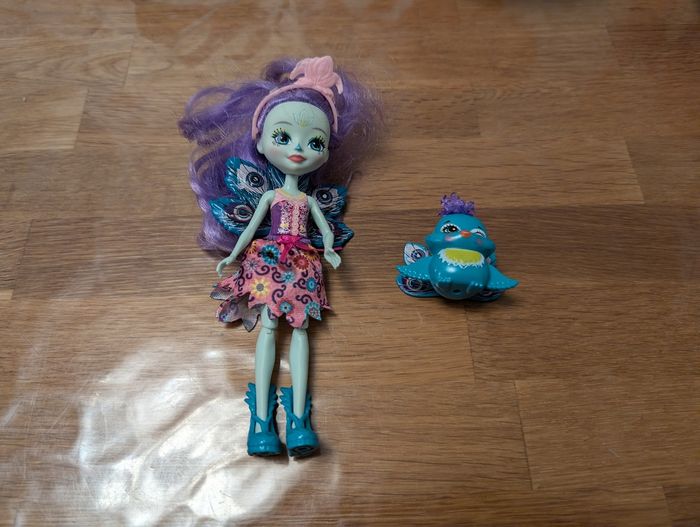 Le salon de thé de Mme Paon Enchantimals Poupée en très bon état, les cheveux sont un peu emmêlés Animal en très bon état Arche en bon état le plastique a blanchi du côté droit Meubles en très bon état Le plat penche Il manque quelques accessoires