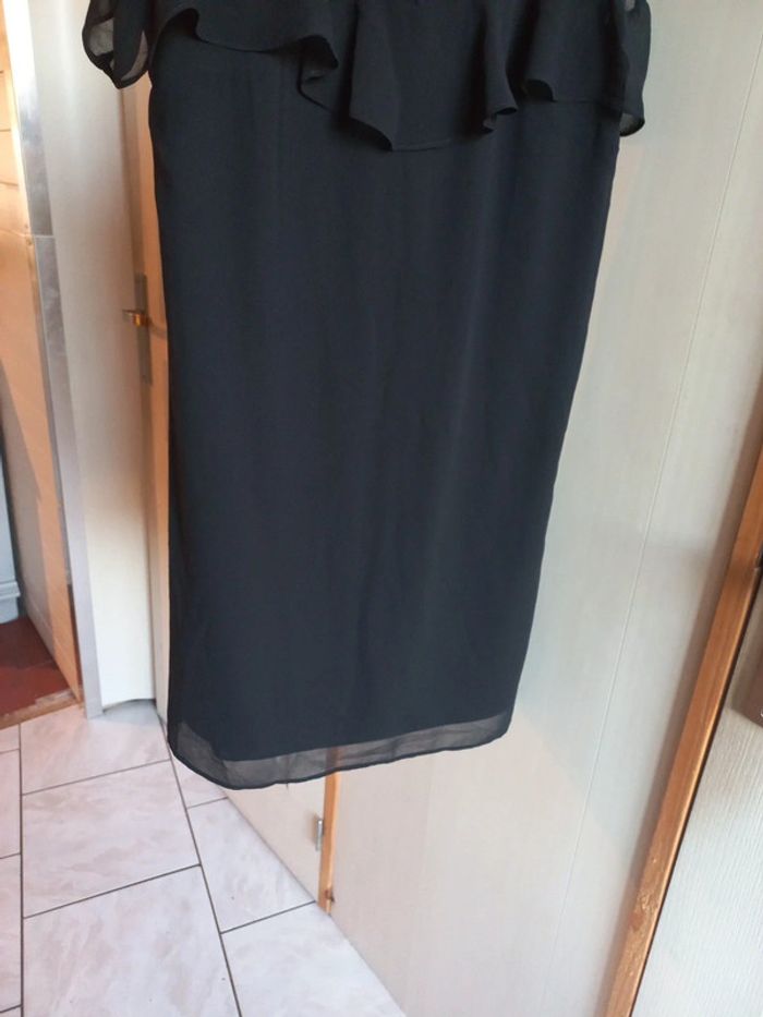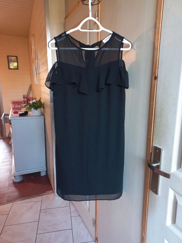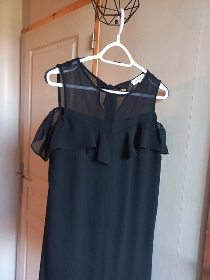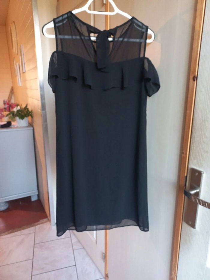 Robe noire droite fluide Nœud dans le dos Grain de malice Taille 40 Aisselle à aisselle 48 cm Longueur 90 cm