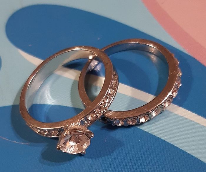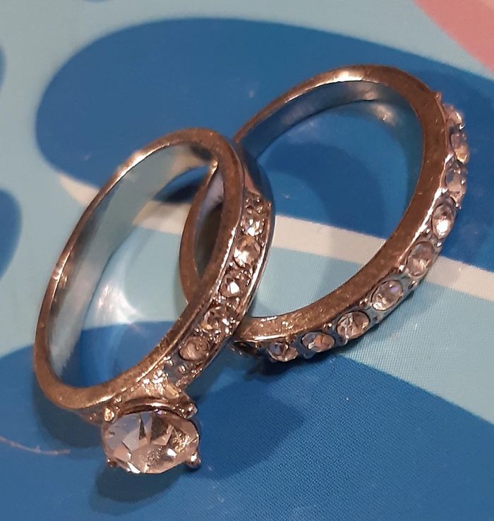 Lot de 2 bagues à vendre en très bon état Toutes les pierres sont présentes 1,7cm pour celle sans le zirconium 1,8cm pour celle avec le zirconium N'hésitez pas à me faire une offre