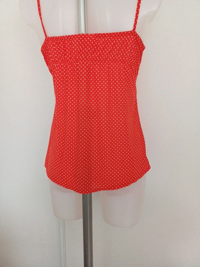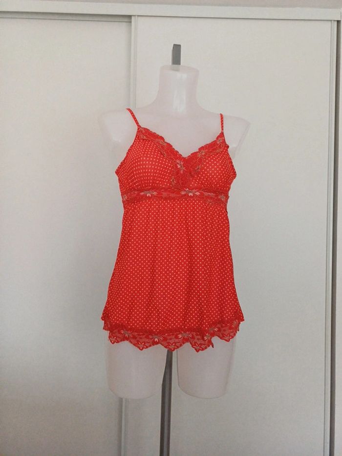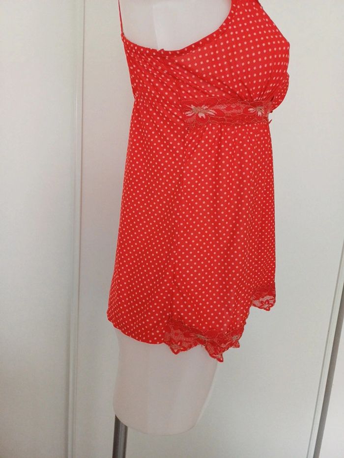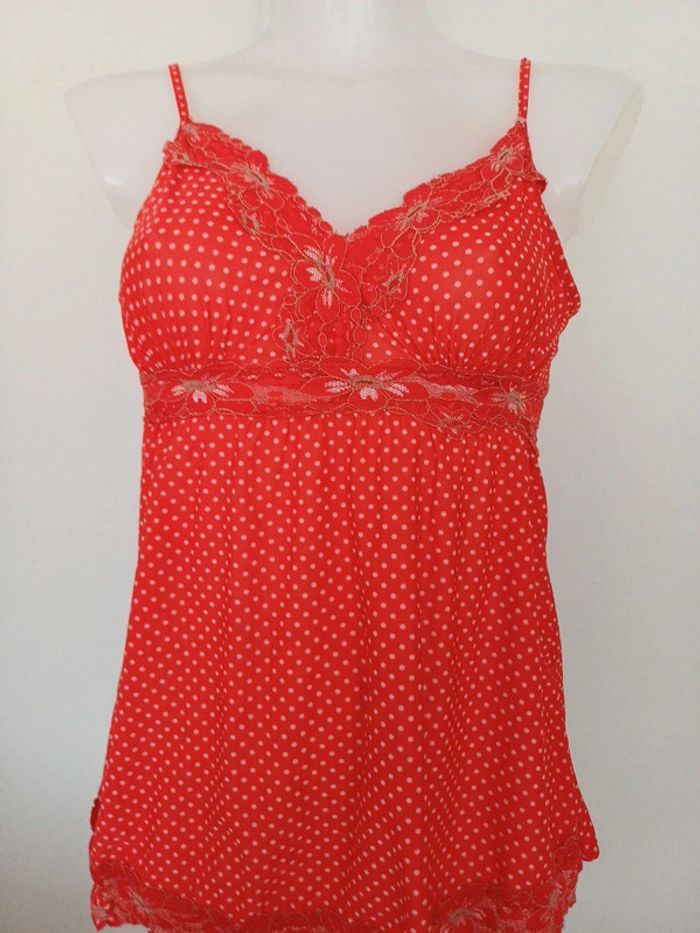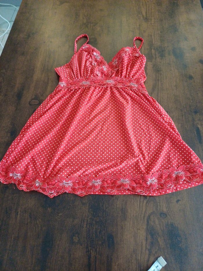 Caraco rouge à pois et dentelle élastique sous la poitrine