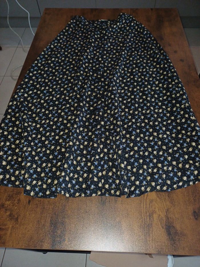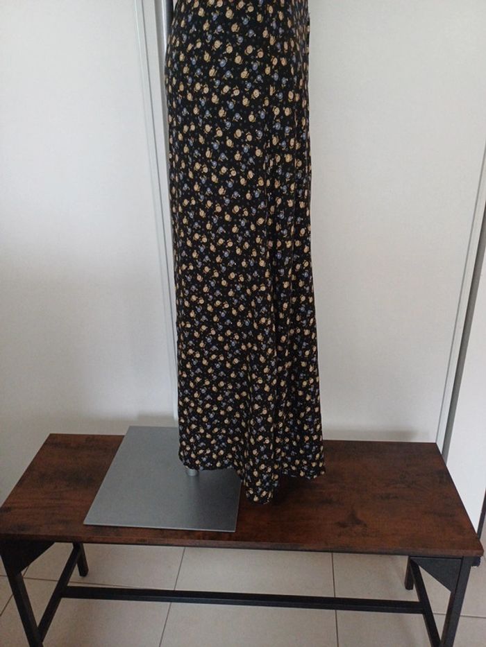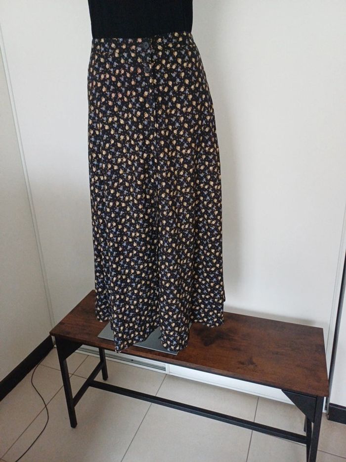 Jupe longue fleurie boutonnage sur la longueur devant taille élastique à l arrière Petit défaut sur le devant en haut de la jupe Taille de 33 à 40 Longueur 84