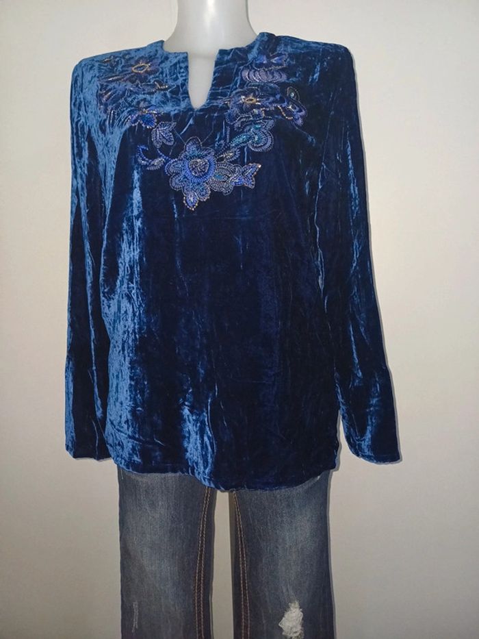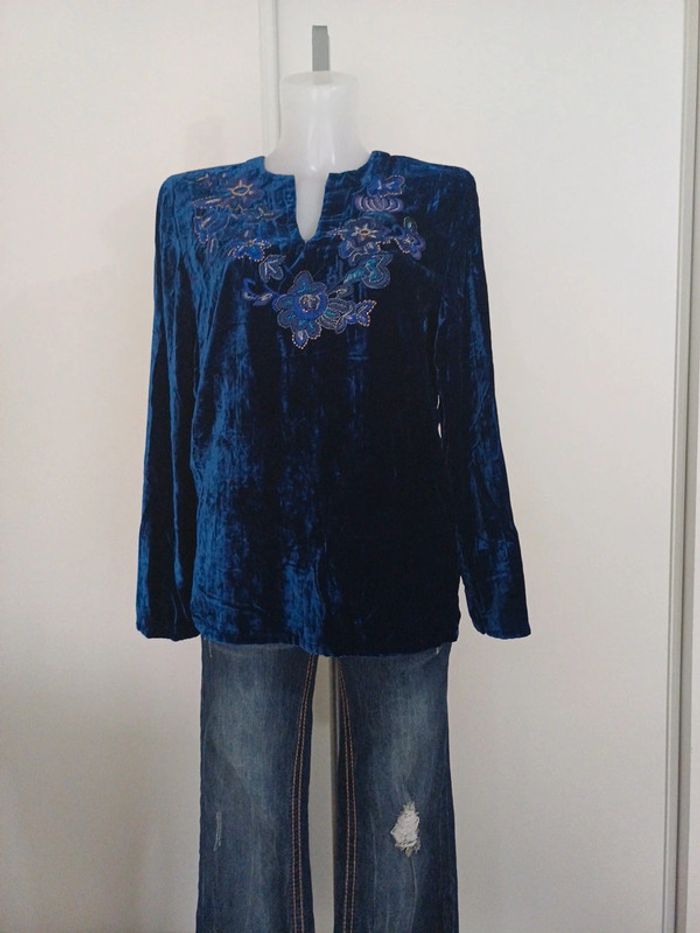 Blouse velours et broderie - photo numéro 1