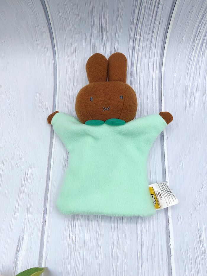 Doudou marionnette lapin vert marron Nijntje MIFFY 24 cm - photo numéro 1