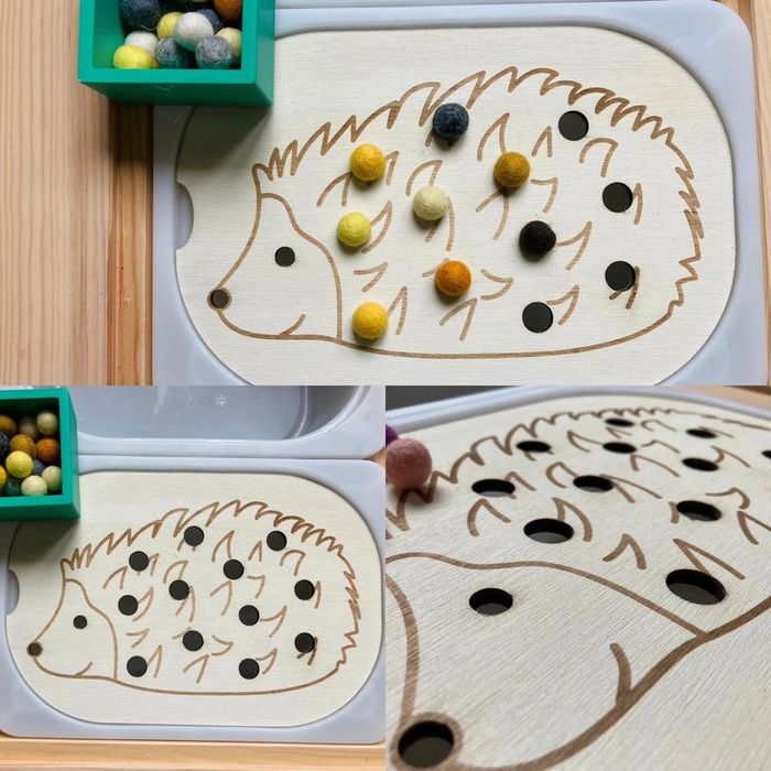 Couvercle en bois de peuplier 5mm pour petit bac Trofast (20×30cm) Hérisson avec différents trous : - 12 trous ronds de 1,5cm - 2 trous ronds de 1cm Vendu seul sans accessoires #lafabriqueleroyAutomne #lafabriqueleroyAnimaux #lafabriqueleroy
