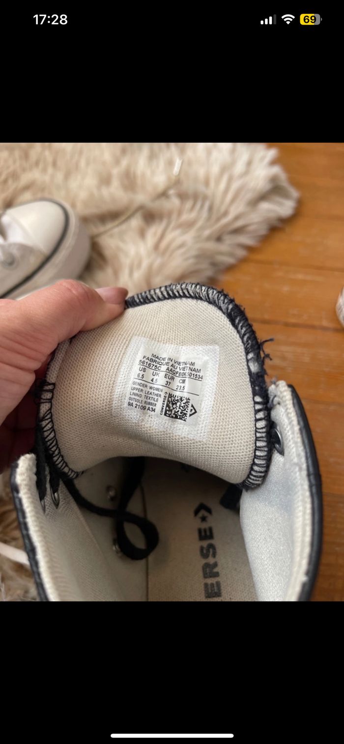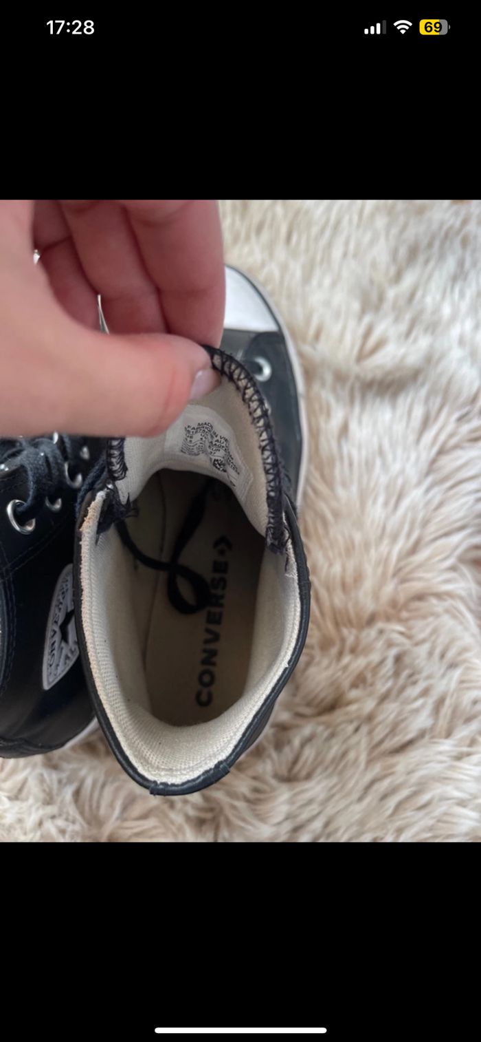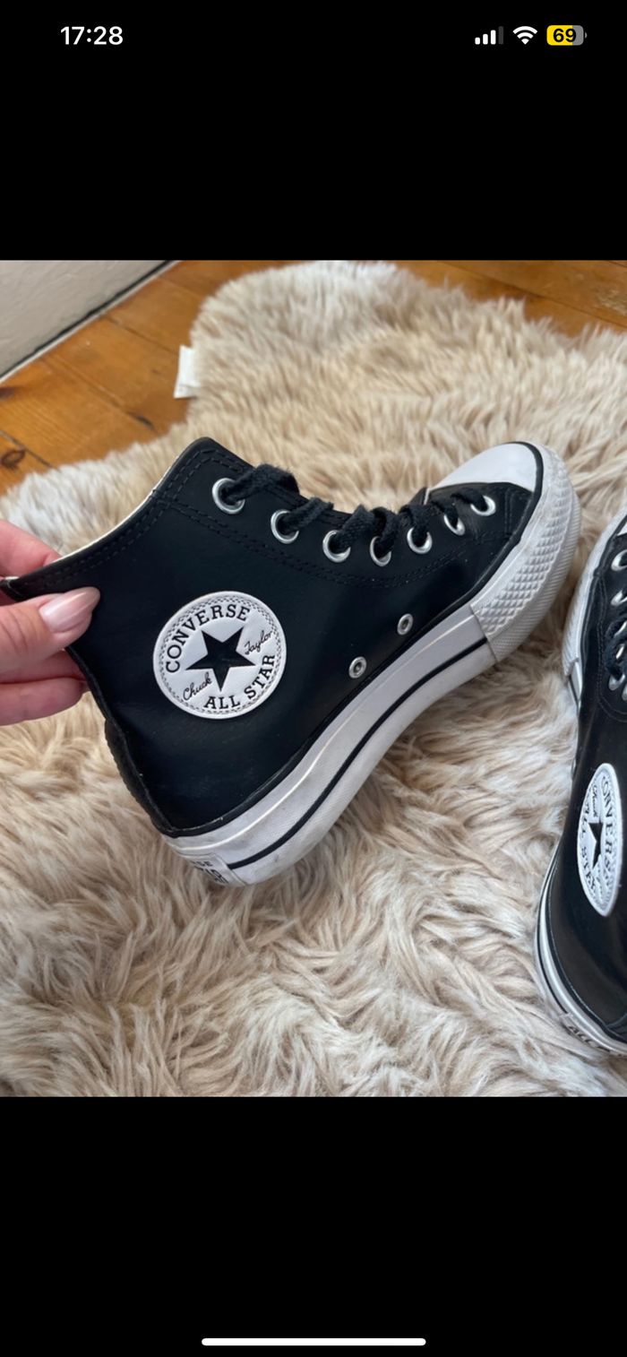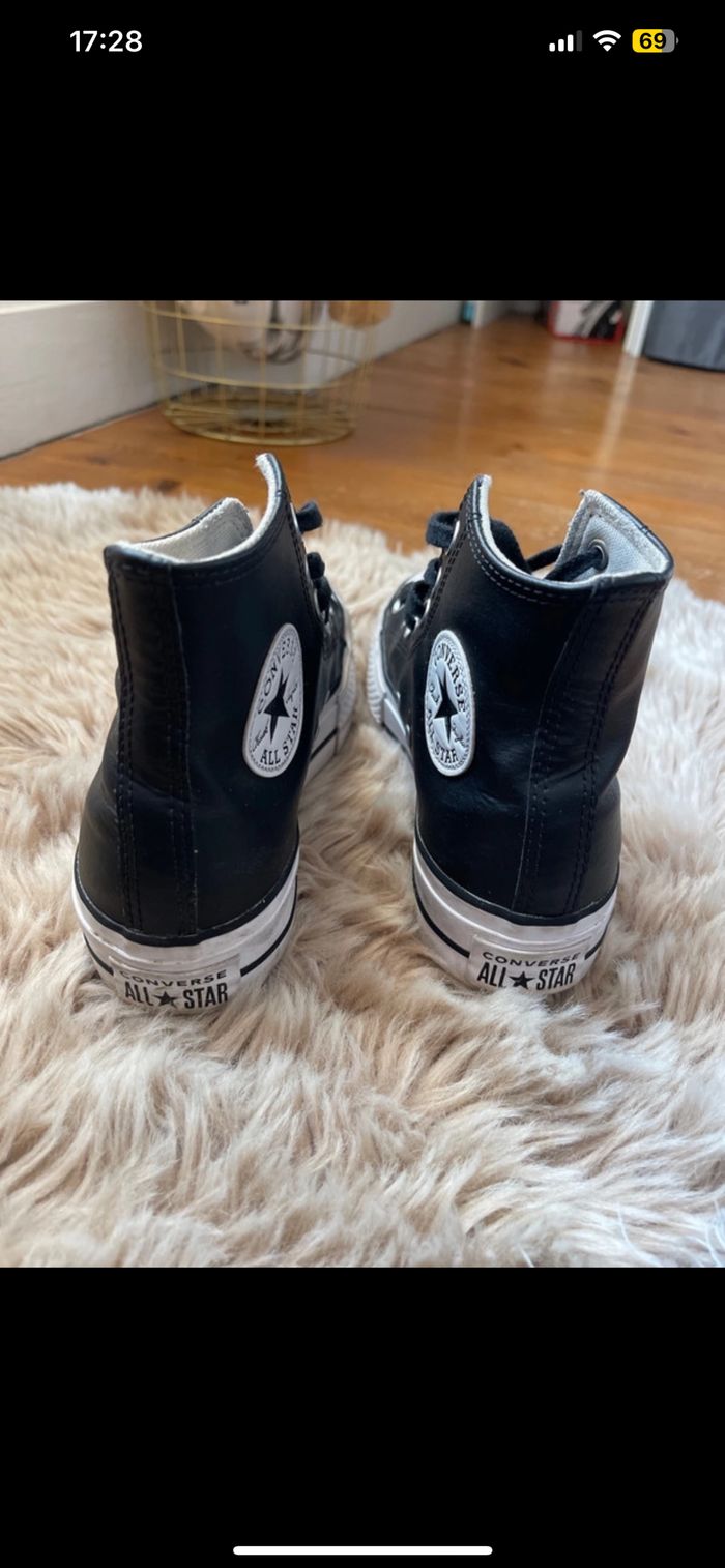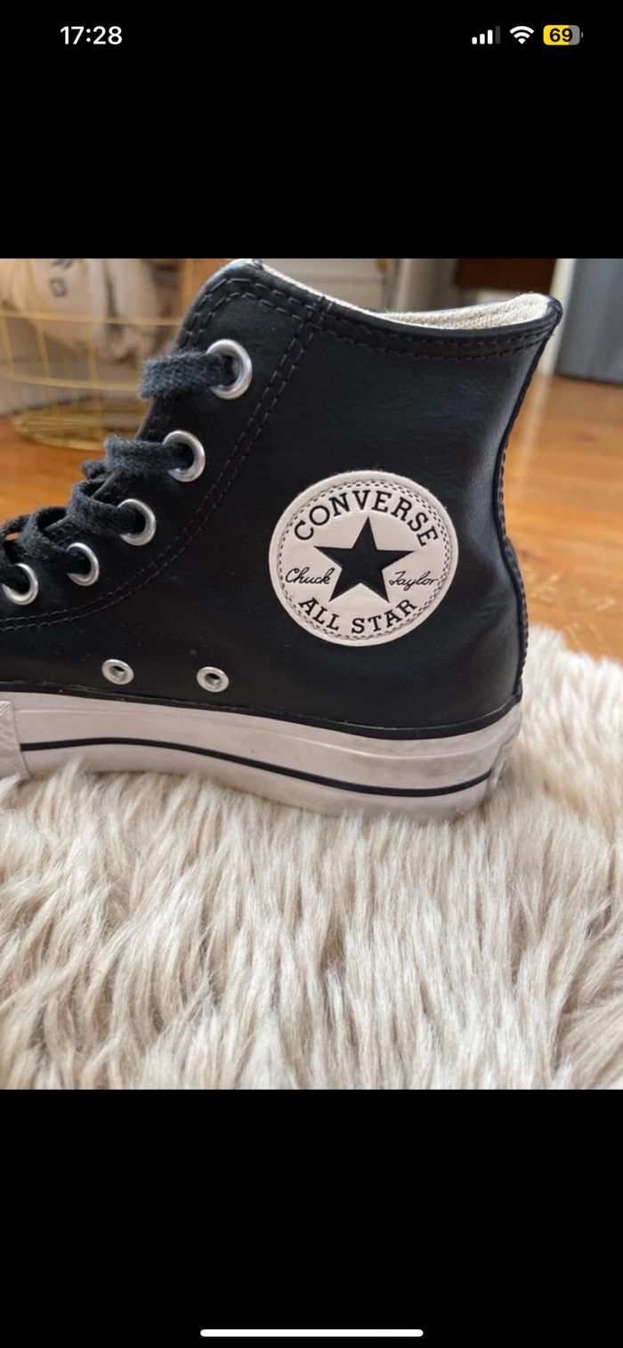 Converses en cuir en très bon état portée pas mal de fois mais reste en très bon état Taille 37 Négociable dans la limite du raisonnable 🌸