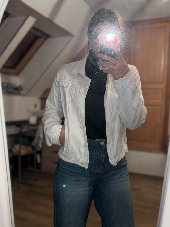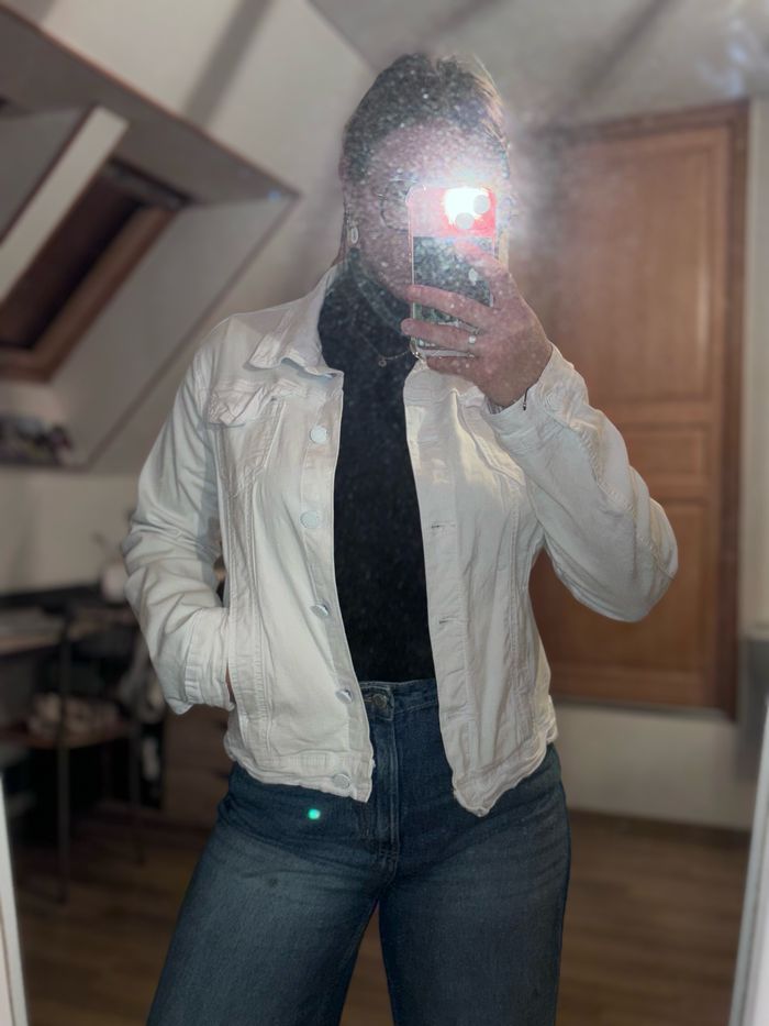 À vendre veste en jean blanche taille L, excellent état !