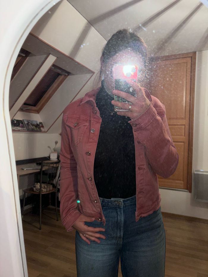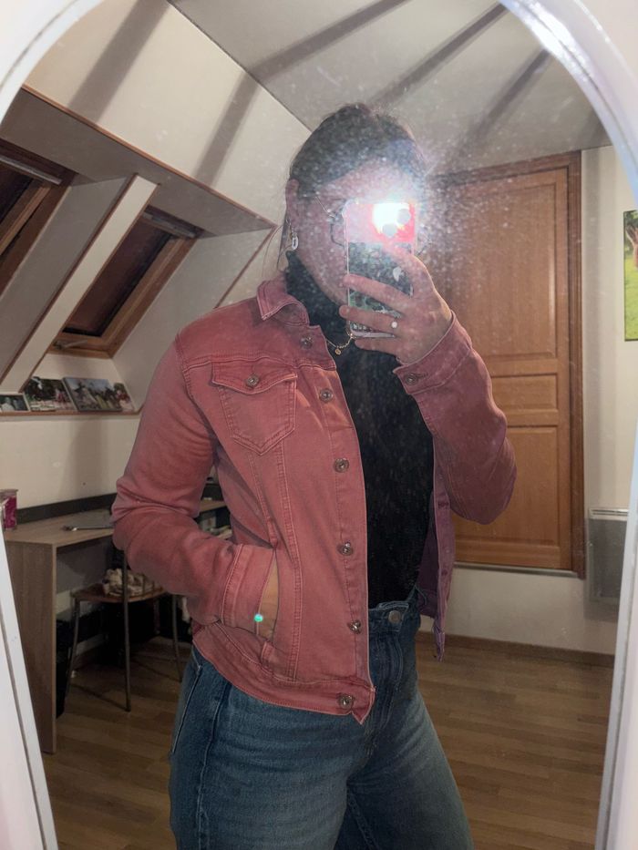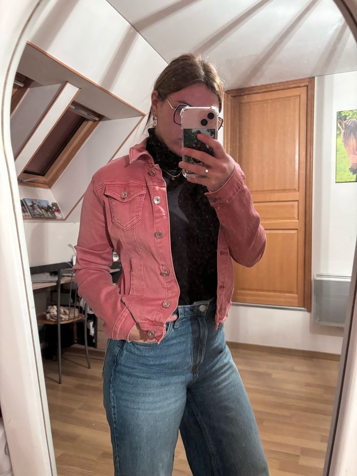 À vendre veste en jean rose, taille L, parfait état