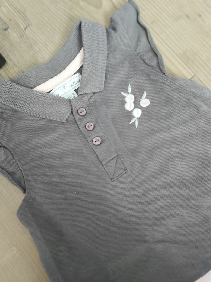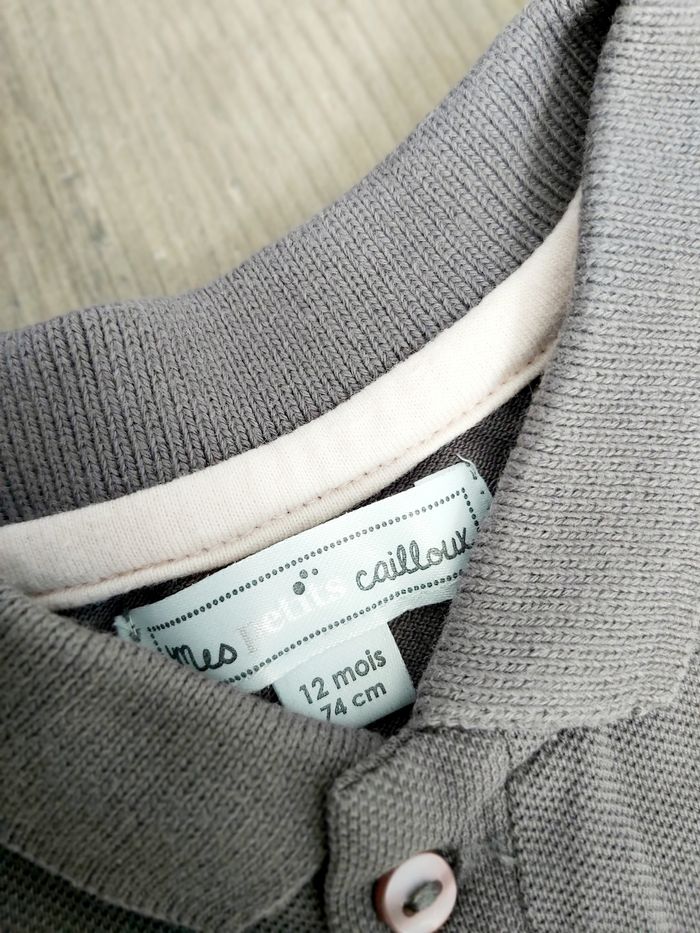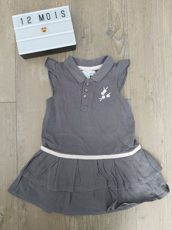 robe polo mes petits cailloux 12 mois, gris et rose, boutonnage torse. tbe