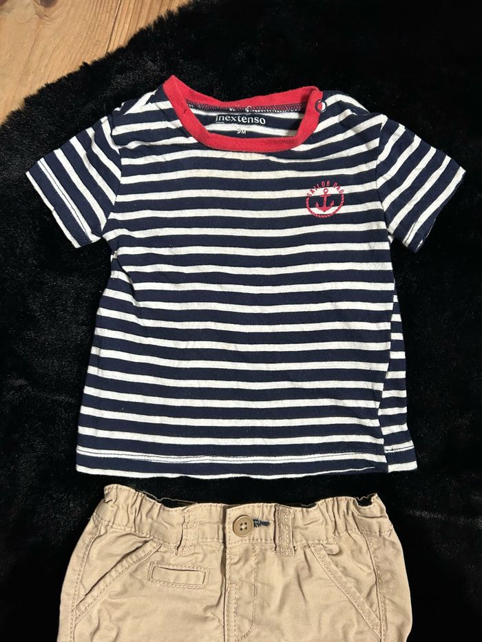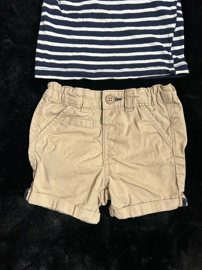 Ensemble 2 pièces comprenant un t-shirt marinière Inextenso et un short chino beige Kiabi En très bon état, 9 mois 👍