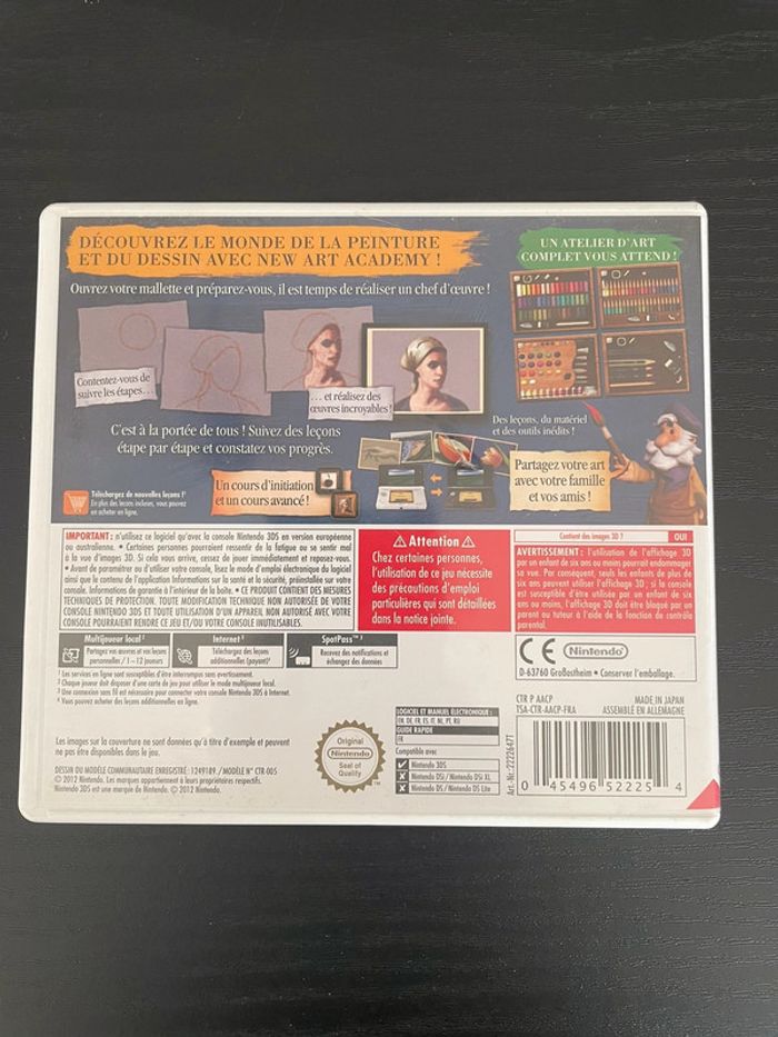DÉCOUVREZ LE MONDE DE LA PEINTURE ET DU DESSIN AVEC NEW ART ACADEMY ! Ouvrez votre mallette et préparez-vous, il est temps de réaliser un chef d'œuvre! ... et réalisez des œuvres incroyables! C'est à la portée de tous ! Suivez des leçons étape par étape et constatez vos progrès. Partagez votre art avec votre famille et vos amis ! Jeu complet et en parfait état Envoi rapide et soigné