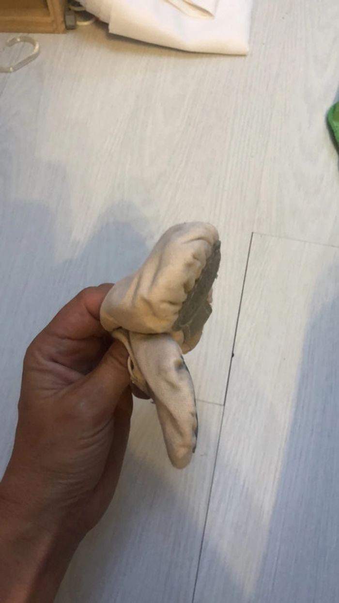 Semelle pleine en cuir, chausson en tissu Nécessite un nettoyage mais sinon en très bon état, pas de trou