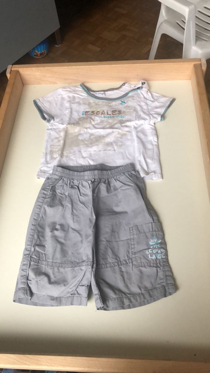 Ensemble short et t-shirt blanc gris sucre d’orge 18 mois - photo numéro 1